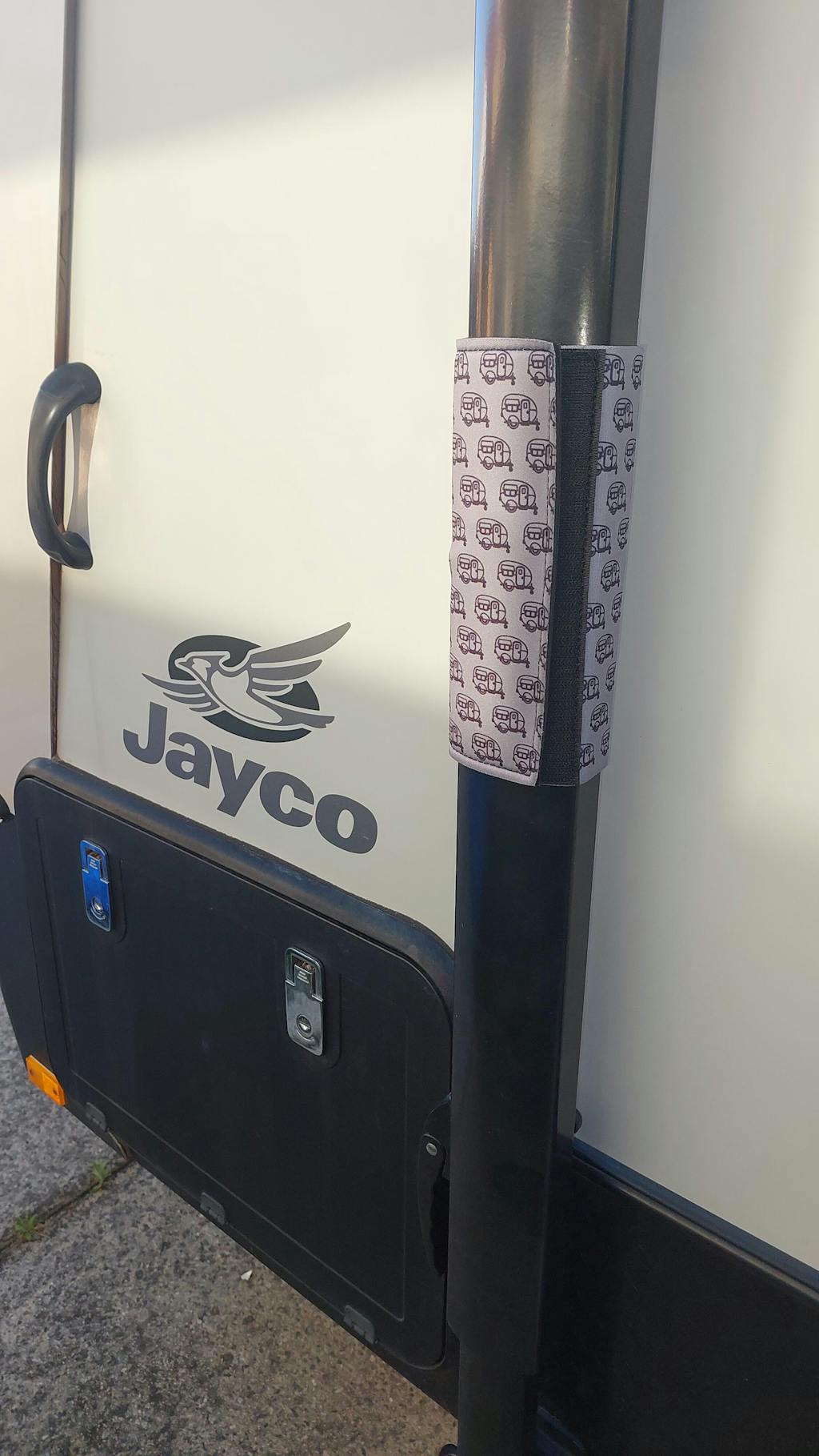 SET OF 2 NEOPRENE STRAPS WITH HEAVY DUTY VELCRO CLOSURES TO ENSURE YOUR AWNING STAYS CLOSED IN TRANSIT